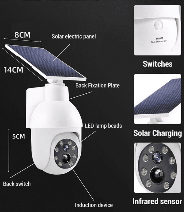 The realistic-looking simulation surveillance camera is enough to scare away criminals and protect your property safety. Whether it is day or night. the street light can play an excellent deterrent role and provide all-round protection.