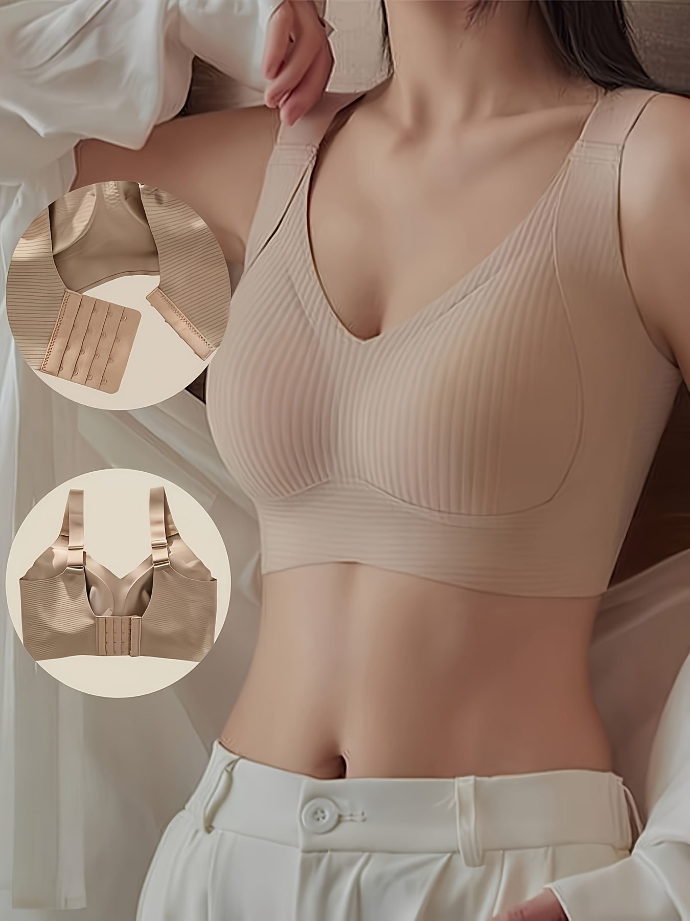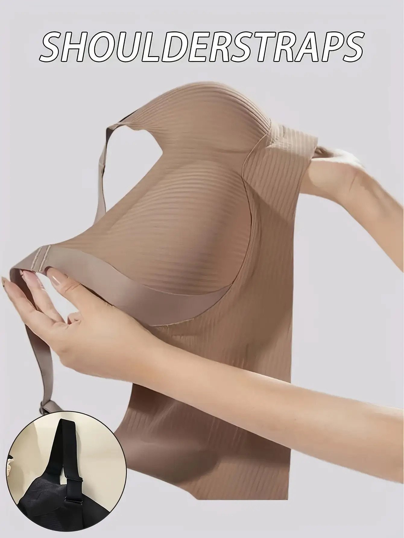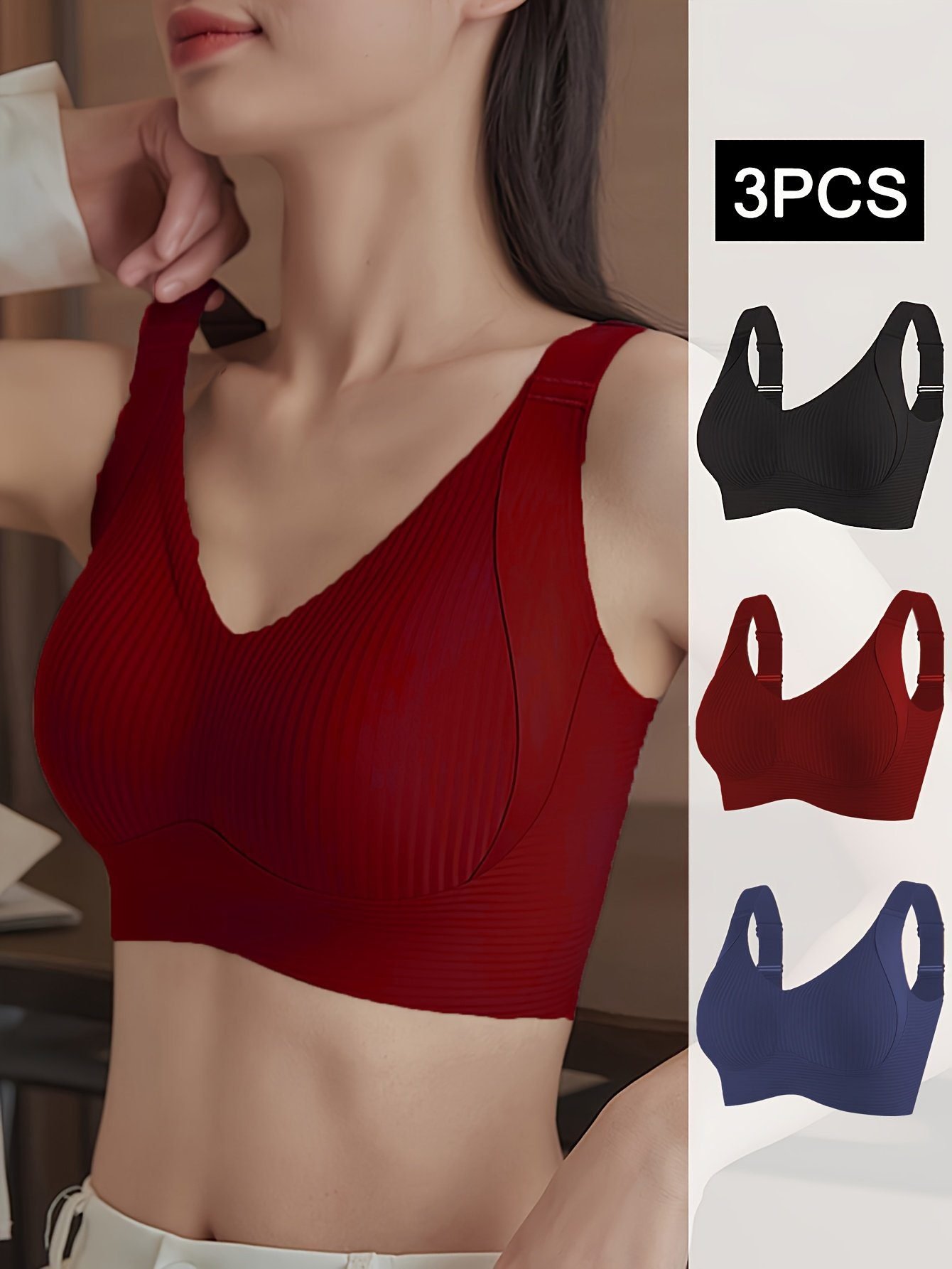 3pcs Women’s Push-Up Bras Anti-Sagging Adjustable Comfort Seamless High Support Wire-Free with Removable Pads& Side Smoothing Striped Design- Breathable Soft Fabric for Casual Attire Light Beigeu002FWhiteu002FBlack, Comfortable Lingerie