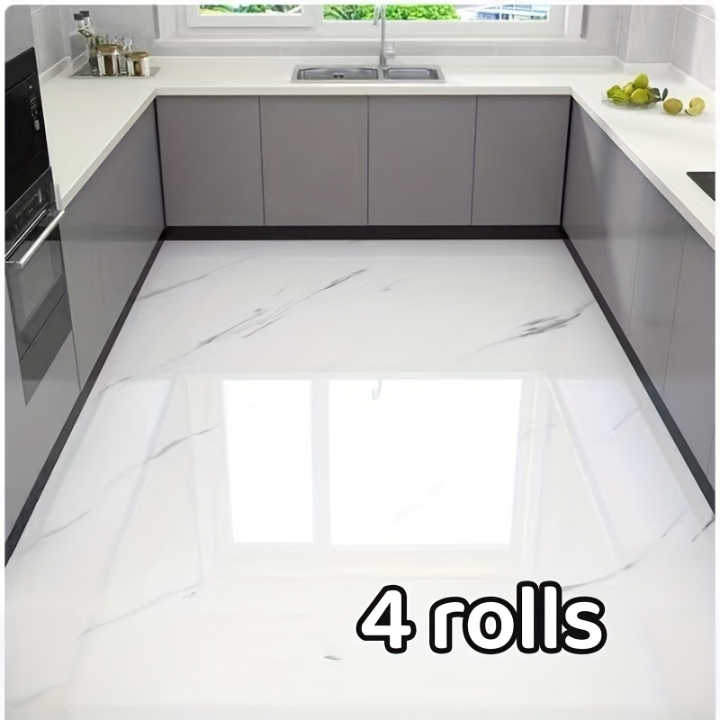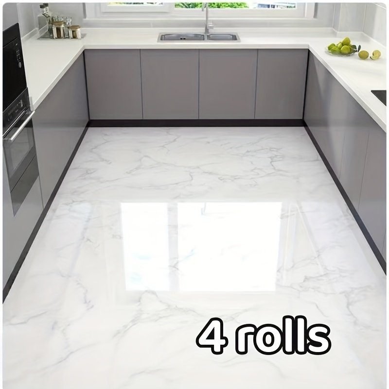 4 Rolls Self-Adhesive Waterproof Marble Contact Paper – Peel & Stick Luxury Vinyl, Greyu002FWhiteu002FBlack Marble Sheets (101.6cm Wide Coverage per Roll), Bathroom, Floors & Walls – Removable Easy Install (No Glue Needed)