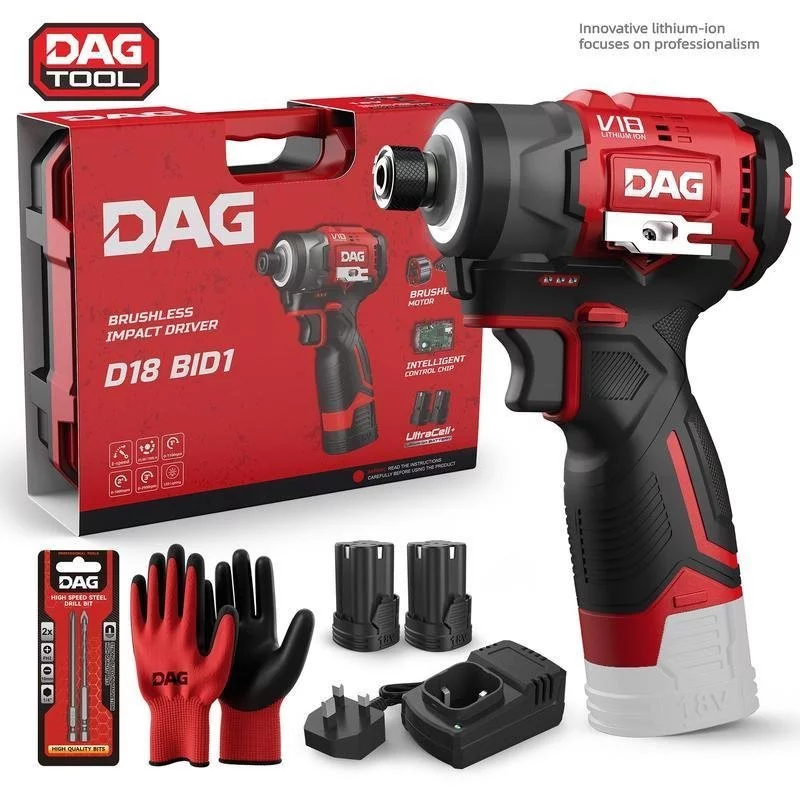 DAG D18 BID1 Brushless Cordless Impact Driver LED Work light, Battery and Charger Included